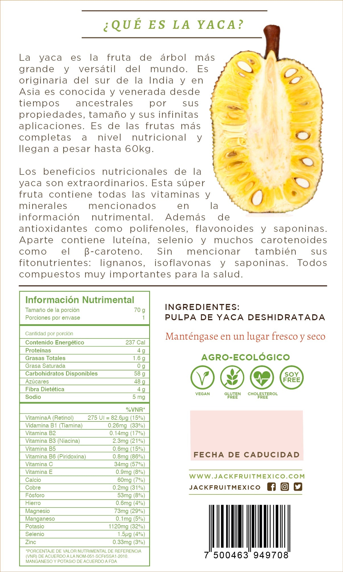 With a prolonged dehydration process at a controlled temperature, we managed to maintain all the extraordinary benefits of jackfruit in an ideal snack for an ideal fruit intake.