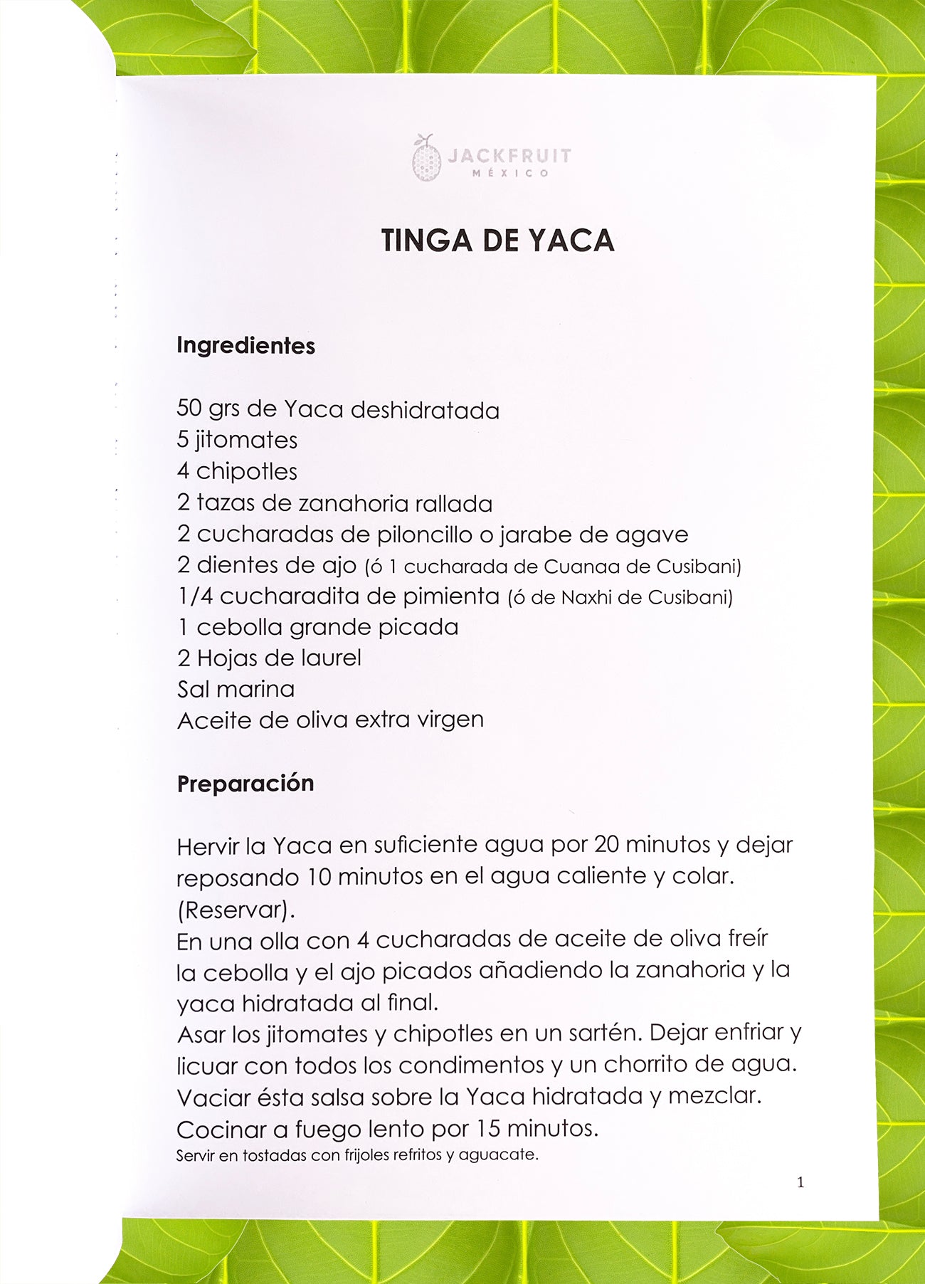 Esta edición contiene 30 recetas con nuestra carne de yaca, para llevar una alimentación sana, sustentable y amigable con tu cuerpo y con medio ambiente.